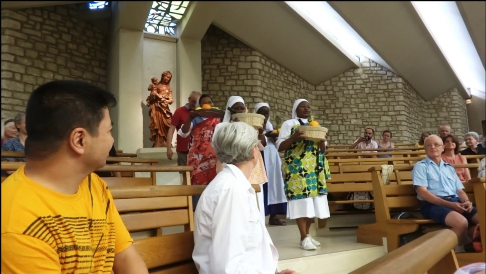 Les petites soeurs africaines, tout en chantant et dansant, viendront y présenter les offrandes !